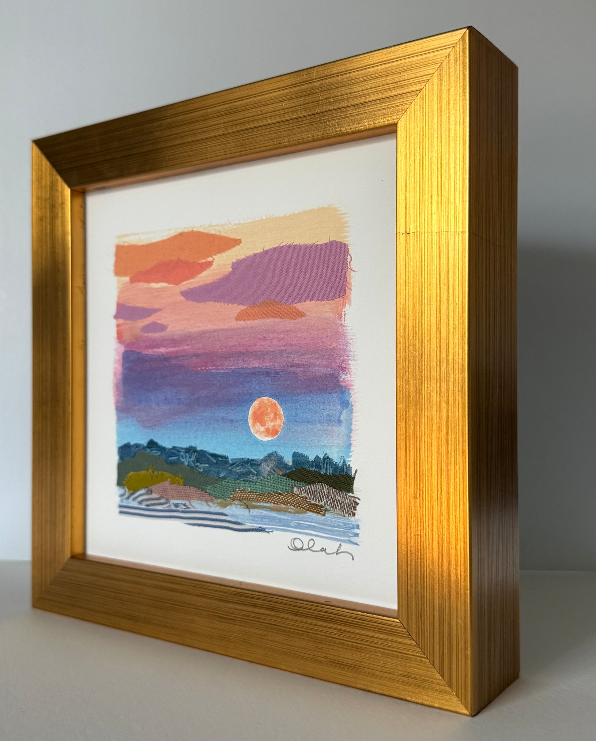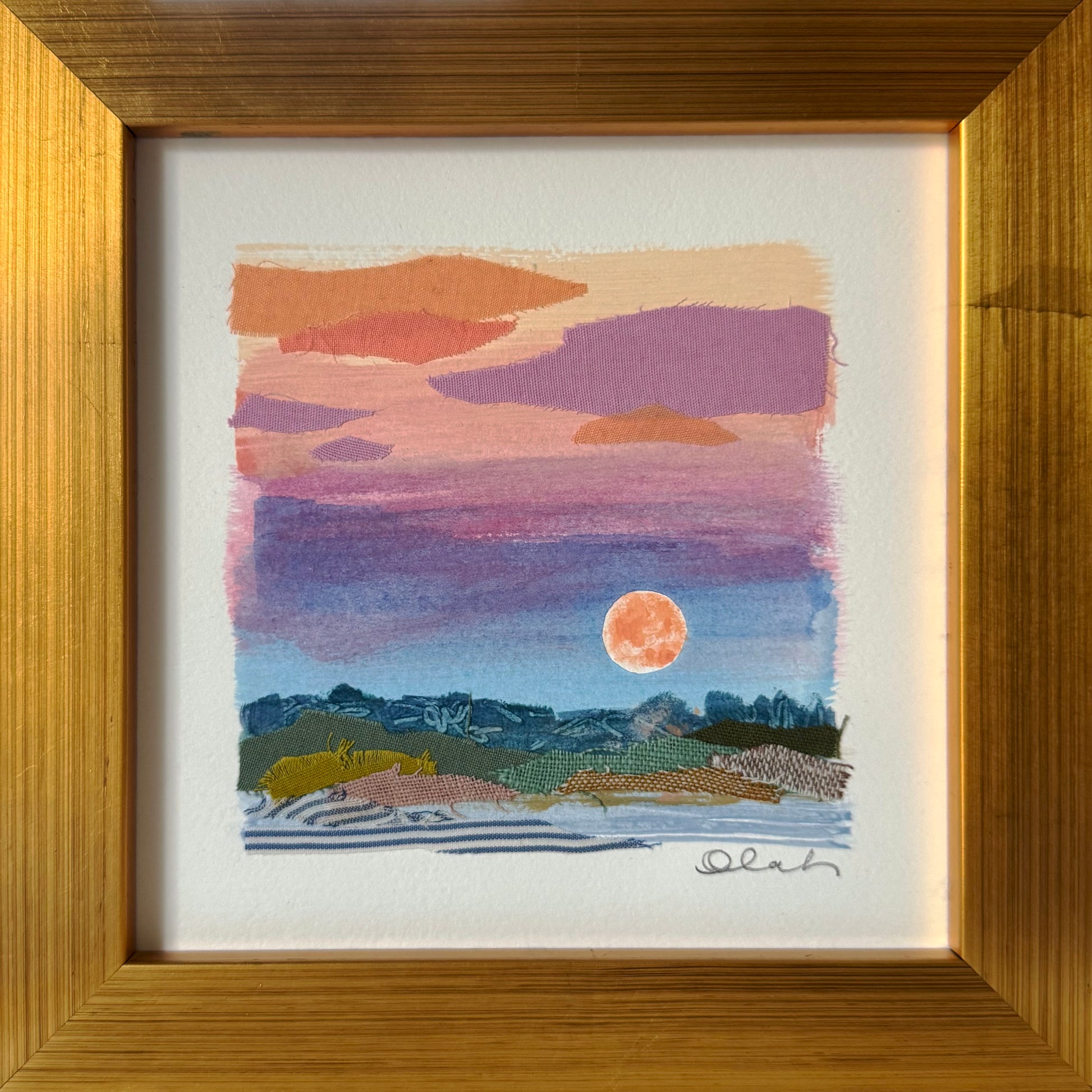 full moon, harvest moon, abstract landscape, marsh, fields, multicolor, rainbow, colorful, gold, pink, sunset, shore, shoreline, Seersucker, cotton, linen, stripes, ocean, dreamscape, seascape, beach, landscape, Charleston, coastal modern, collage, fabric, textiles, quilt, fiber art