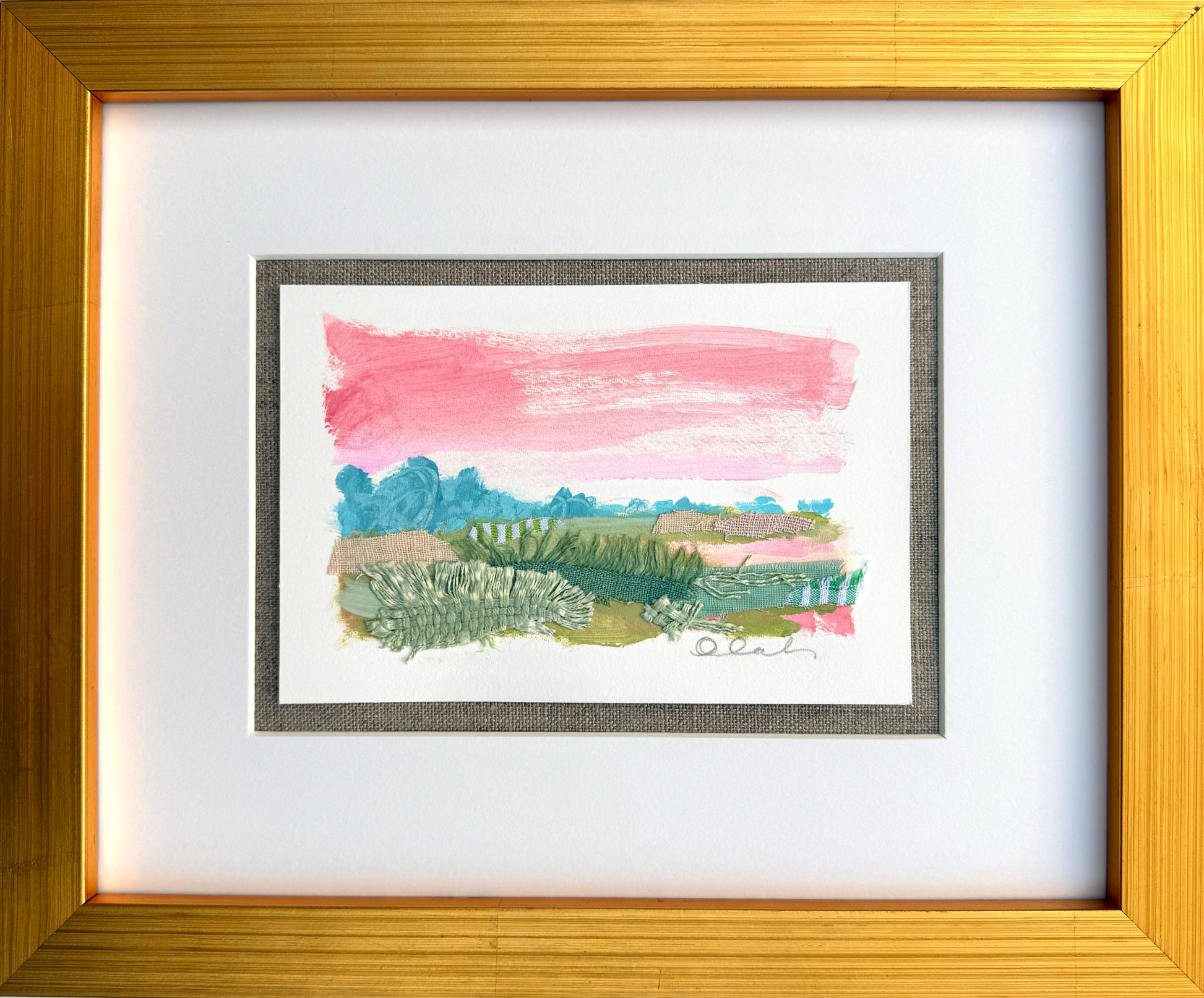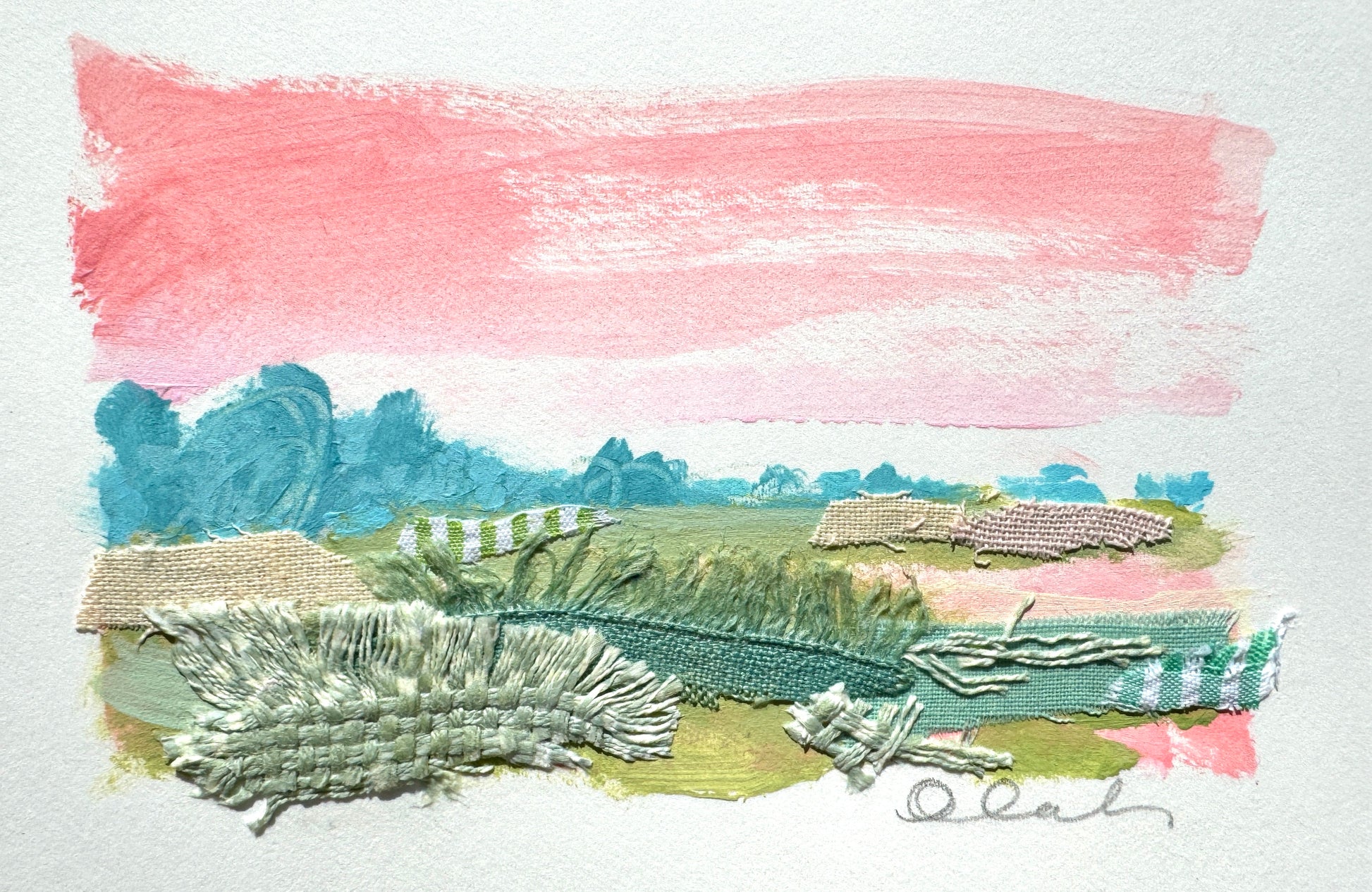 marsh, green and pink, blue and white, indigo, shore, shoreline, Seersucker, gingham, fringe, cotton, blue stripes, blue, shades of blue, ocean, blue and neutral, pastel, dreamscape, seascape, beach, golf, fairway, golf course, southern, landscape, Charleston, South Carolina, coastal, sail, sailboat, harbor, abstract, abstracted landscape, coastal modern, collage, fabric, textiles, quilt