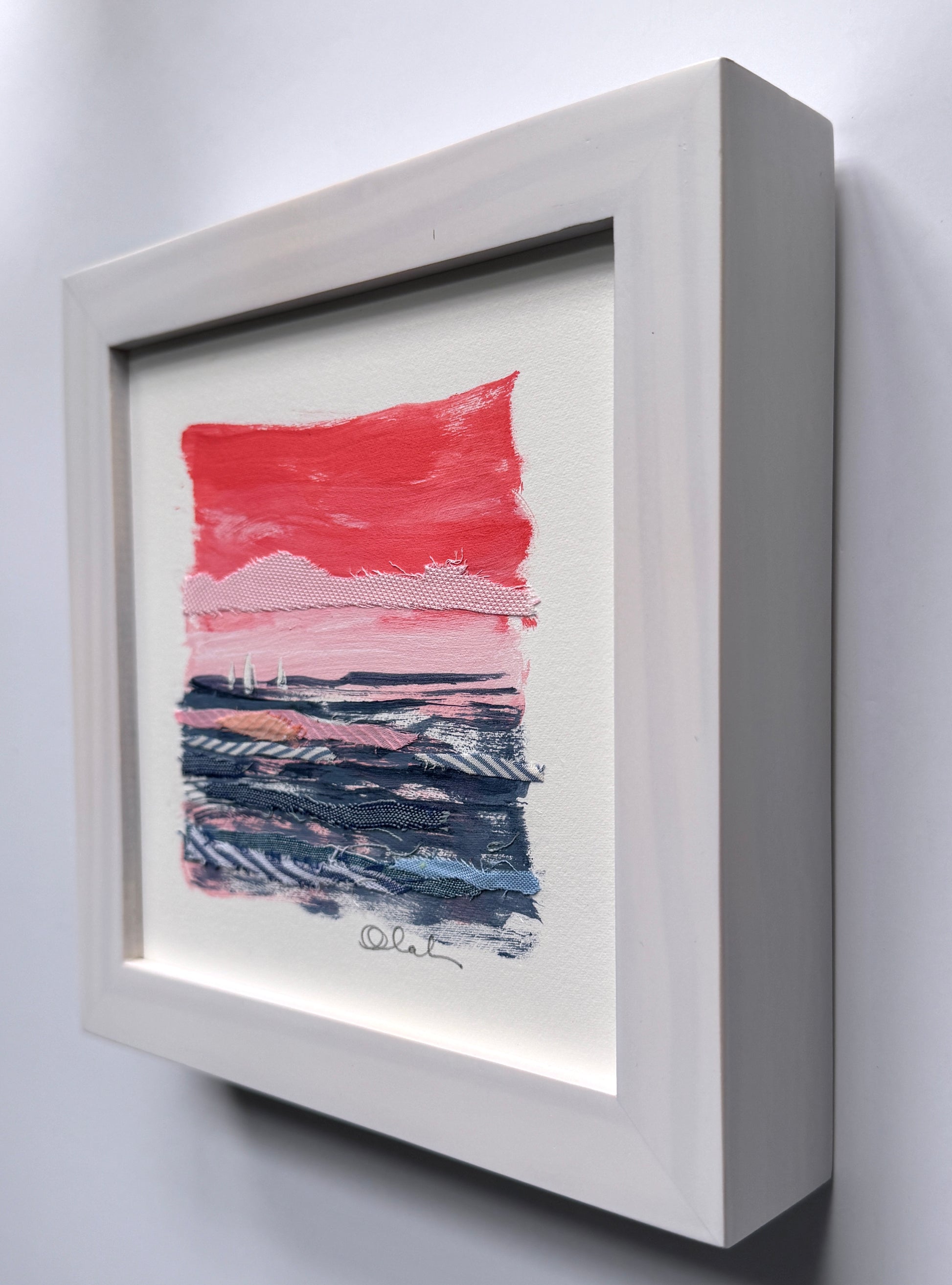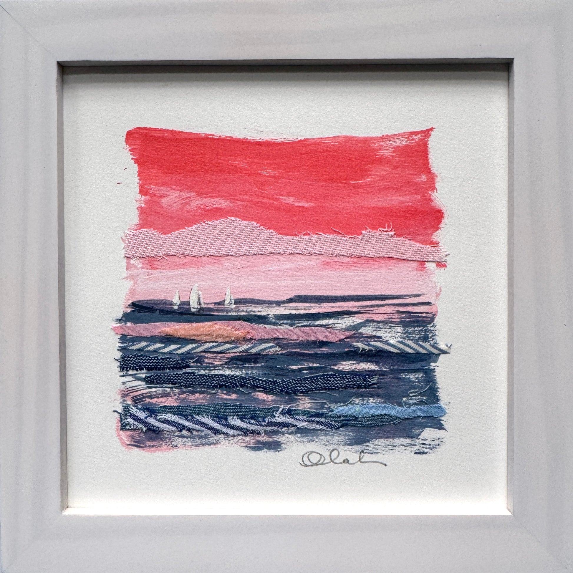 coral, pink and red, blue and pink, blue and white, shore, shoreline, Seersucker, gingham, cotton, blue stripes, blue, shades of blue, ocean, blue and neutral, pastel, dreamscape, seascape, beach, landscape, Charleston, coastal, sail, sailboat, harbor, abstract, abstracted landscape, coastal modern, collage, fabric, textiles, quilt
