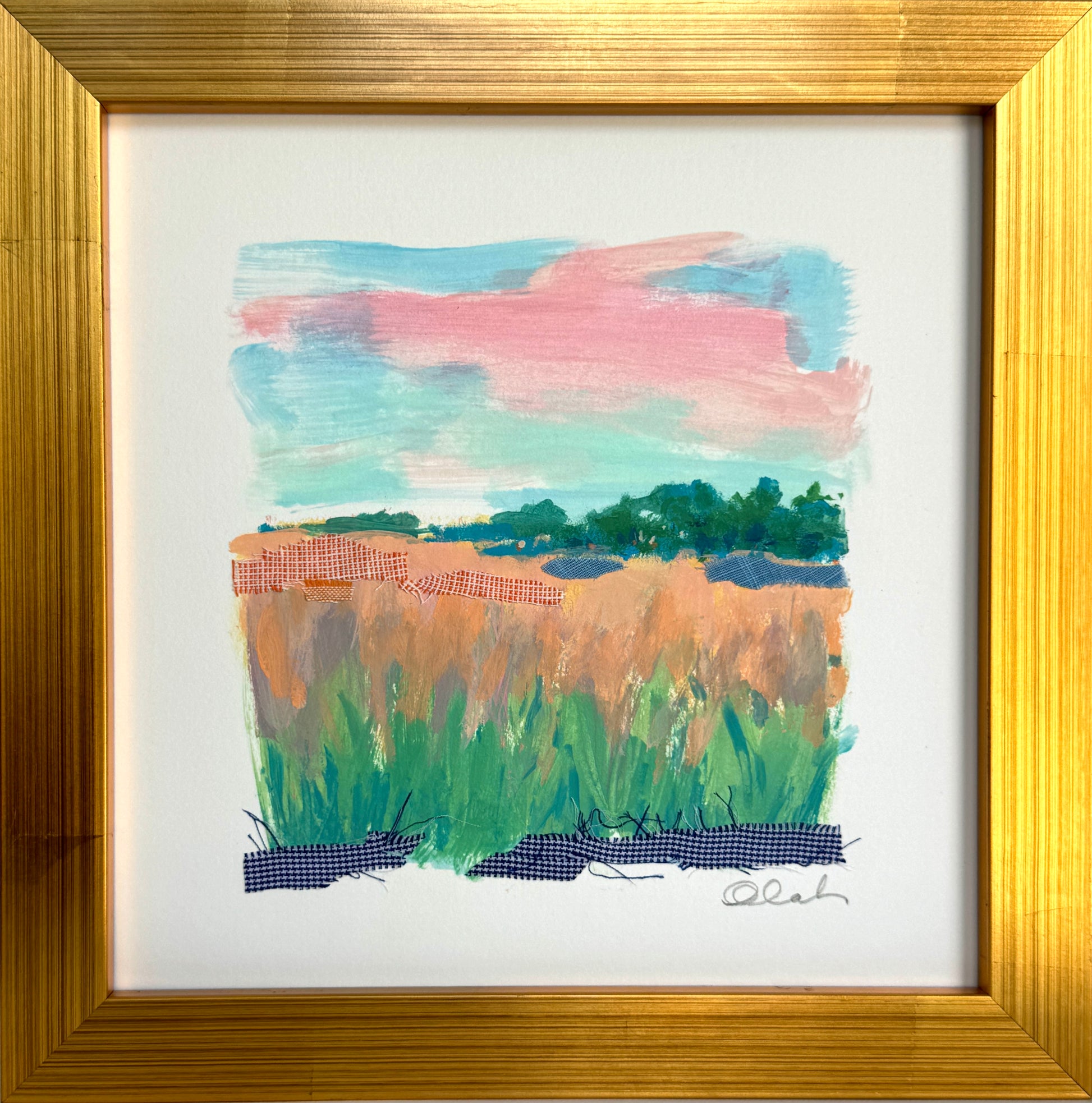 Lowcountry, South Carolina, Palmetto Bluff, May, River, golf, southern, shore, shoreline, spartina, marsh, Seersucker, gingham, cotton, blue stripes, blue, shades of blue, atlantic, ocean, pastel, dreamscape, seascape, beach, lake, landscape, Charleston, coastal, sail, harbor, abstract, abstracted landscape, coastal modern, collage, fabric, textiles, quilt