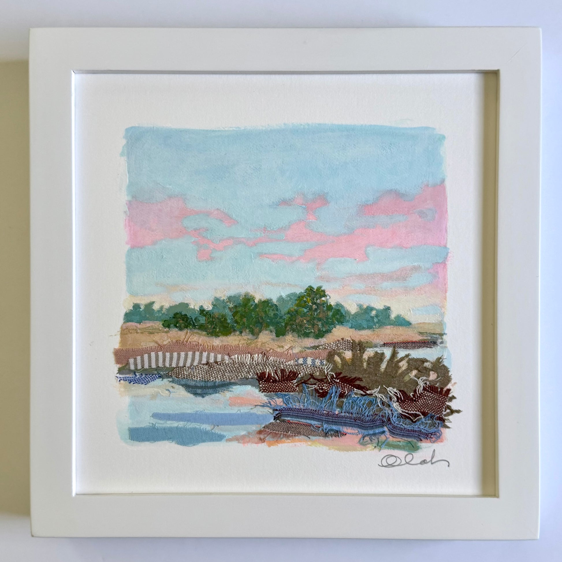 Charleston, South Carolina, Mount Pleasant, Lowcountry, blue and green, creek, spartina, marsh, Seersucker, gingham, cotton, linen, silk, chartreuse, dreamscape, seascape, landscape, coastal, abstract, abstracted landscape, coastal modern, collage, fabric, textiles, quilt, painting