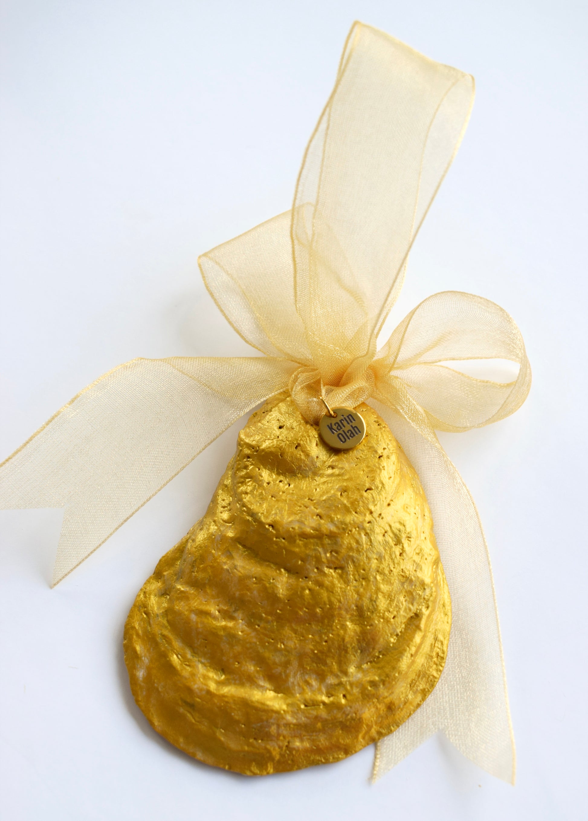 Oyster ornaments are perfect for your Holiday Decor. Hang them on the Christmas Tree or with your stockings. Give them as gifts or hang on a hostess bottle of Bubbly. Beautiful as a napkin holder or gift tag.