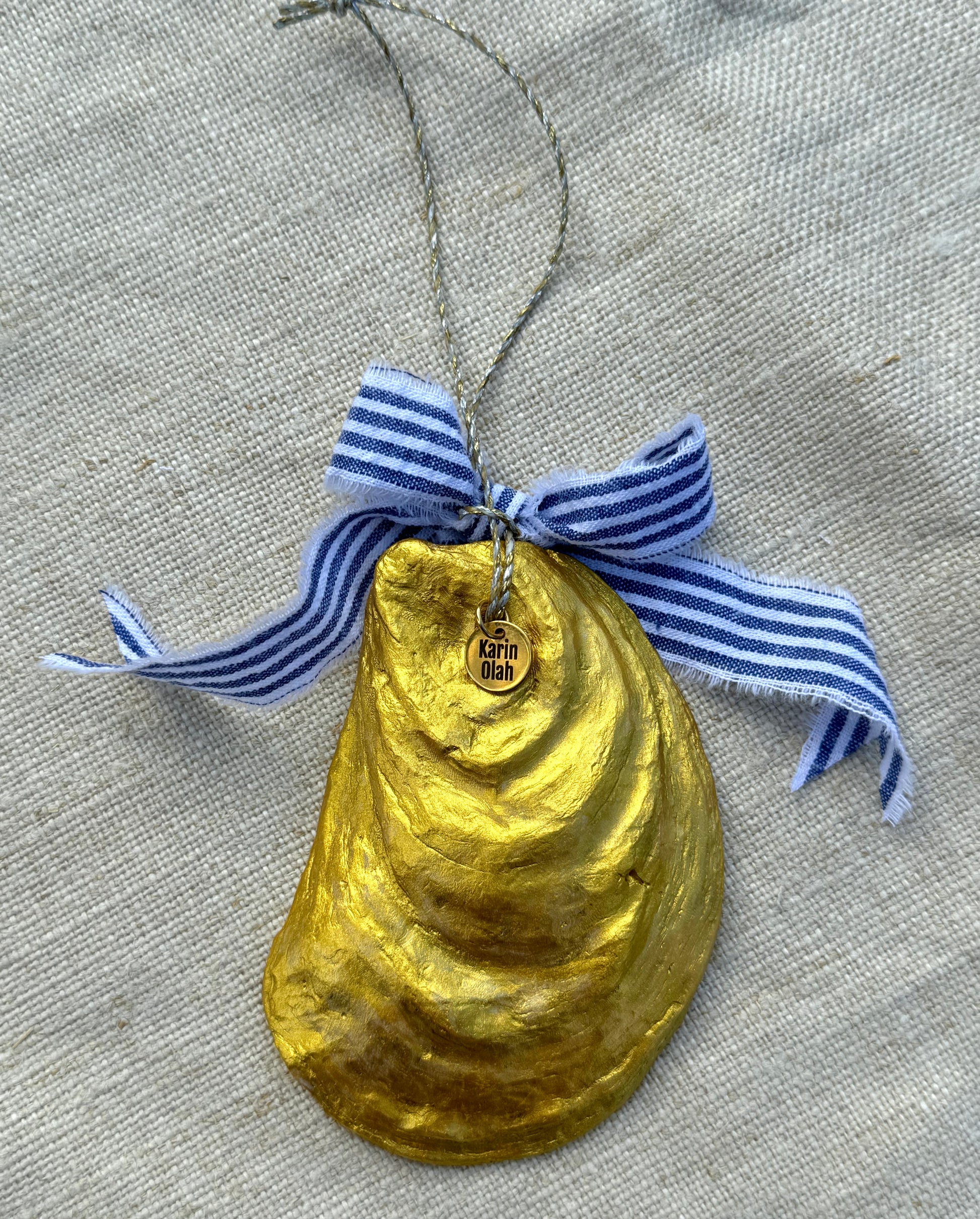 Oyster ornaments are perfect for your Holiday Decor. Hang them on the Christmas Tree or with your stockings. Give them as gifts or hang on a hostess bottle of Bubbly. Beautiful as a napkin holder or wedding gift.