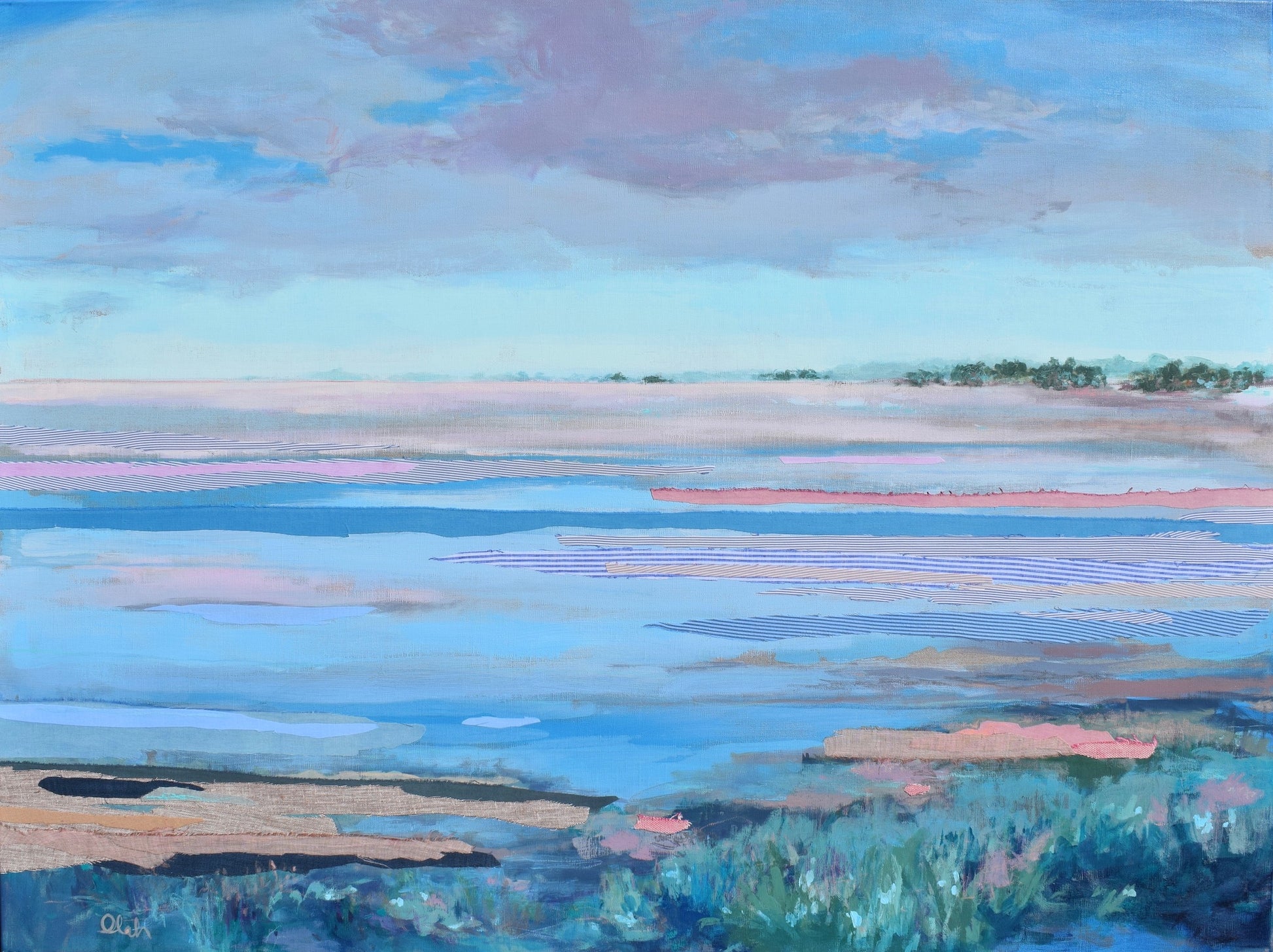 This paintings is inspired by the morning light after a storm over the calm marsh grasses of Charleston, South Carolina.