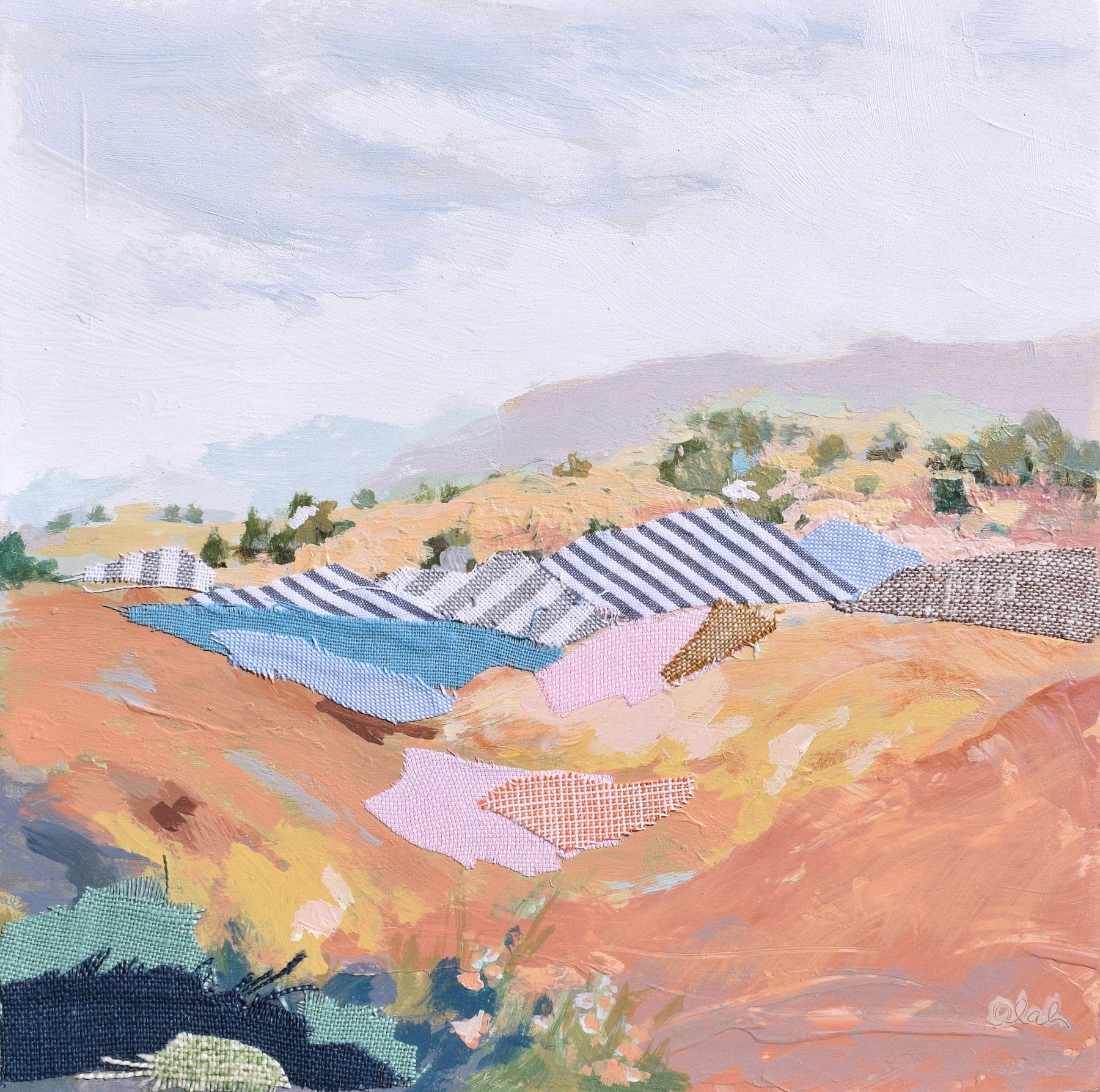 This Giclee Fine Art Print is created from my original mixed media painting. The acrylic brushstrokes along with layers of fabric, seersucker cotton, vintage textiles, and hand-dyed linen are shown in crisp definition. Each print has my artist signature on it in the lower left or right corner.