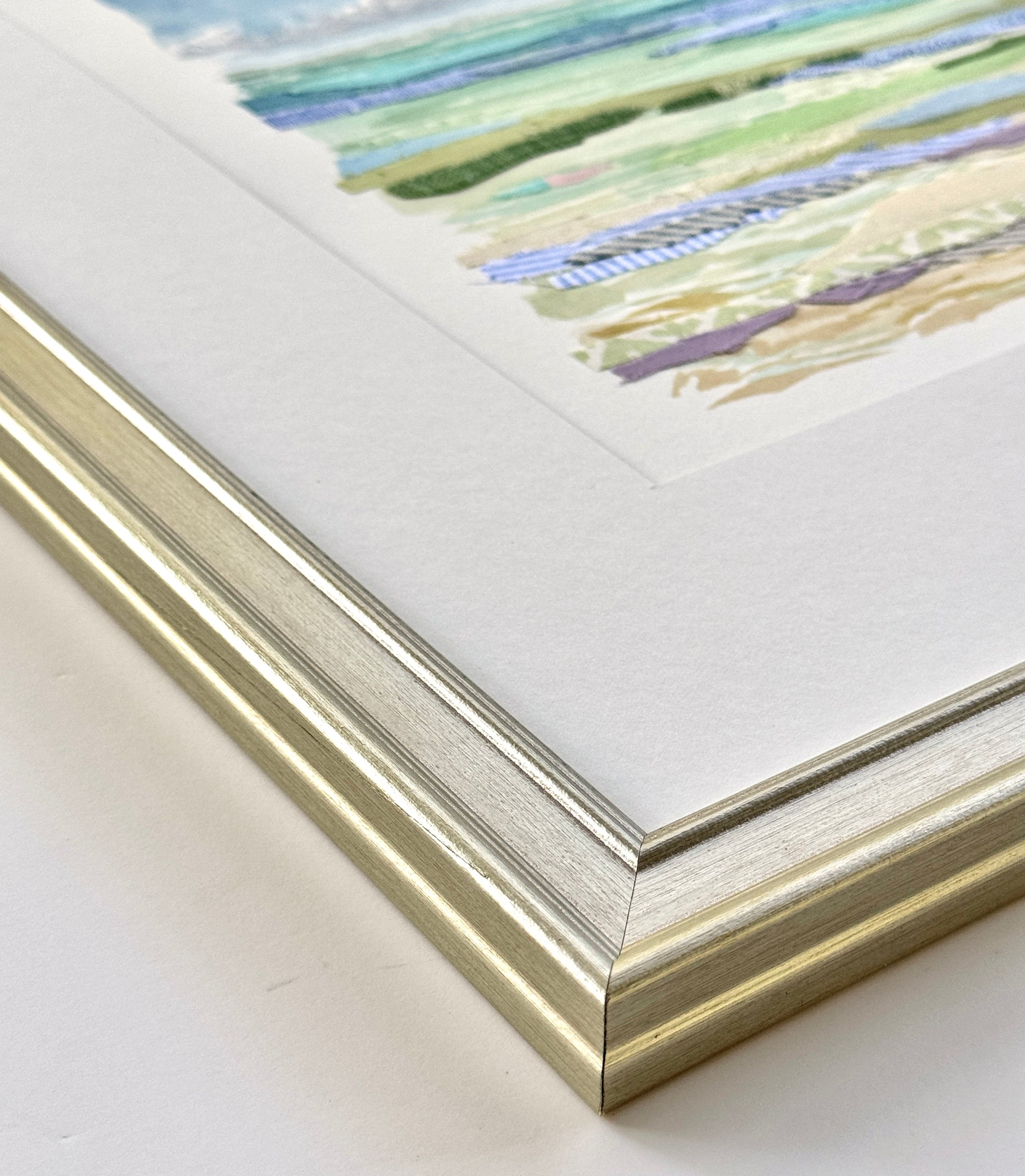 Silver wood frame included, archival white mat, glass cover