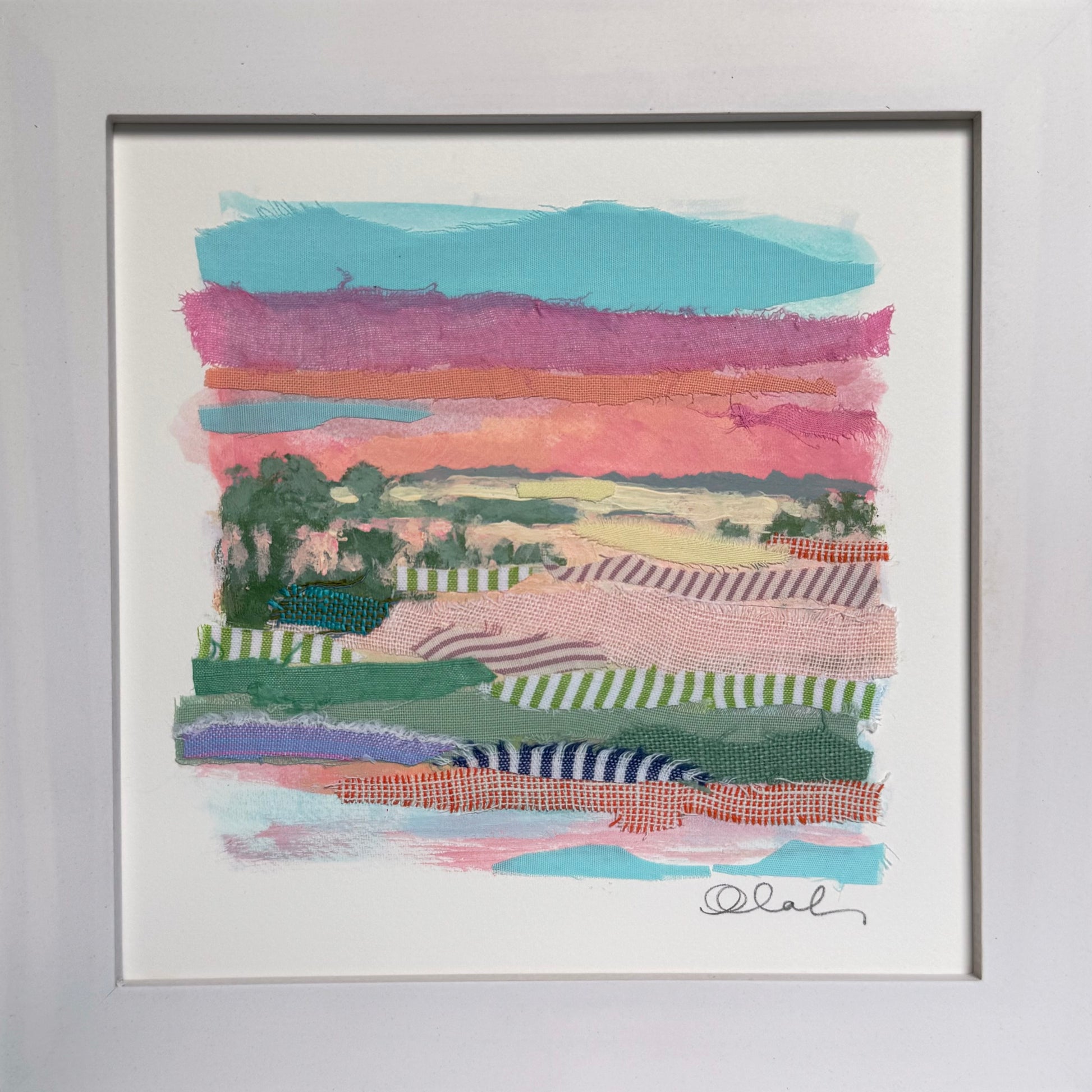 Palmetto Bluff, South Carolina, pink, creek, spartina, marsh, Seersucker, gingham, cotton, May River, Lowcountry, dreamscape, seascape, beach, landscape, Charleston, coastal, abstract, abstracted landscape, coastal modern, collage, fabric, textiles, quilt