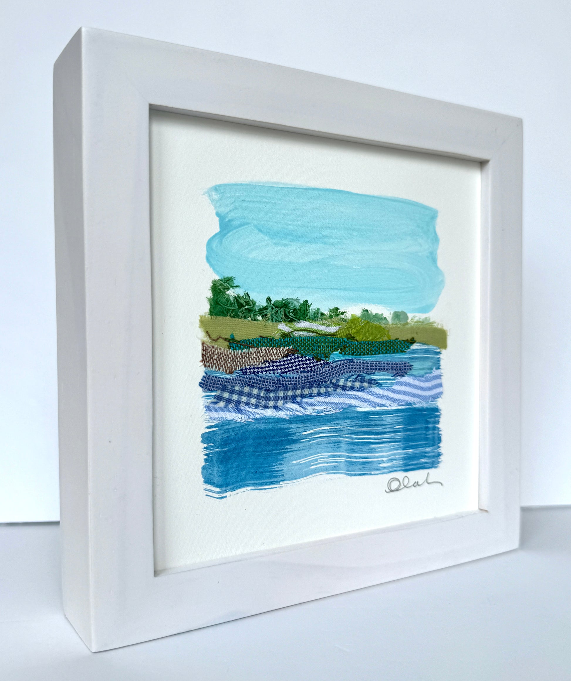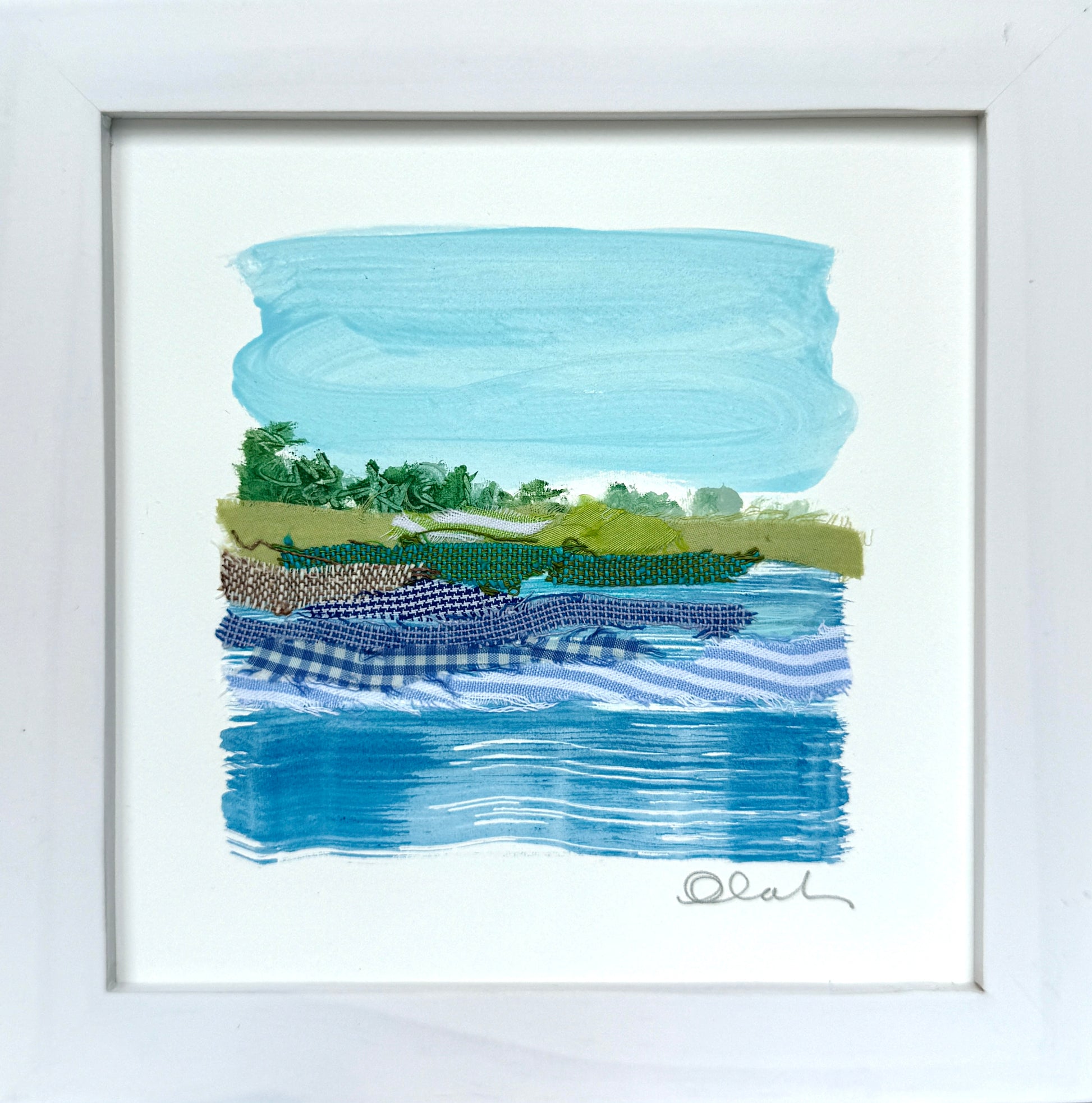 mint, blue and green, blue and white, shore, shoreline, marsh, Seersucker, gingham, cotton, blue stripes, blue, shades of blue, ocean, blue and neutral, pastel, dreamscape, seascape, beach, lake, river, landscape, Charleston, coastal, harbor, abstract, abstracted landscape, coastal modern, collage, fabric, textiles, quilt