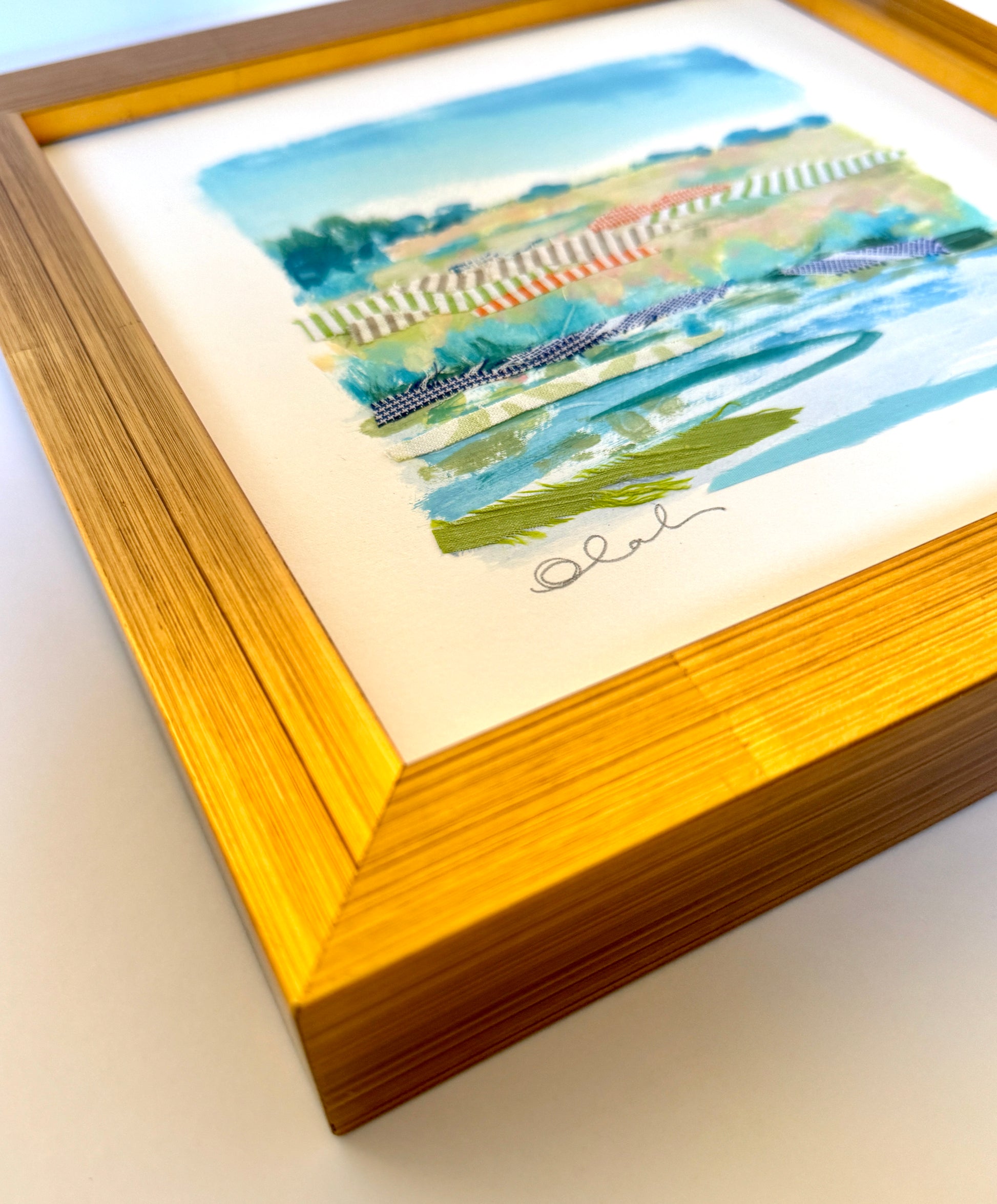 Summer, Lake, Seersucker, cotton, silk, greens, shades of green, pink stripes, dreamscape, seascape, coastal, abstract, abstracted landscape, coastal modern, fabric, textiles, texture, marsh, chartreuse, spring green, spartina, Charleston, Harbor, South Carolina, Ashley River, Folly Beach, Lowcountry, Kiawah Island, Seabrook Island, Cotton anniversary, Linen Anniversary, Paper Anniversary