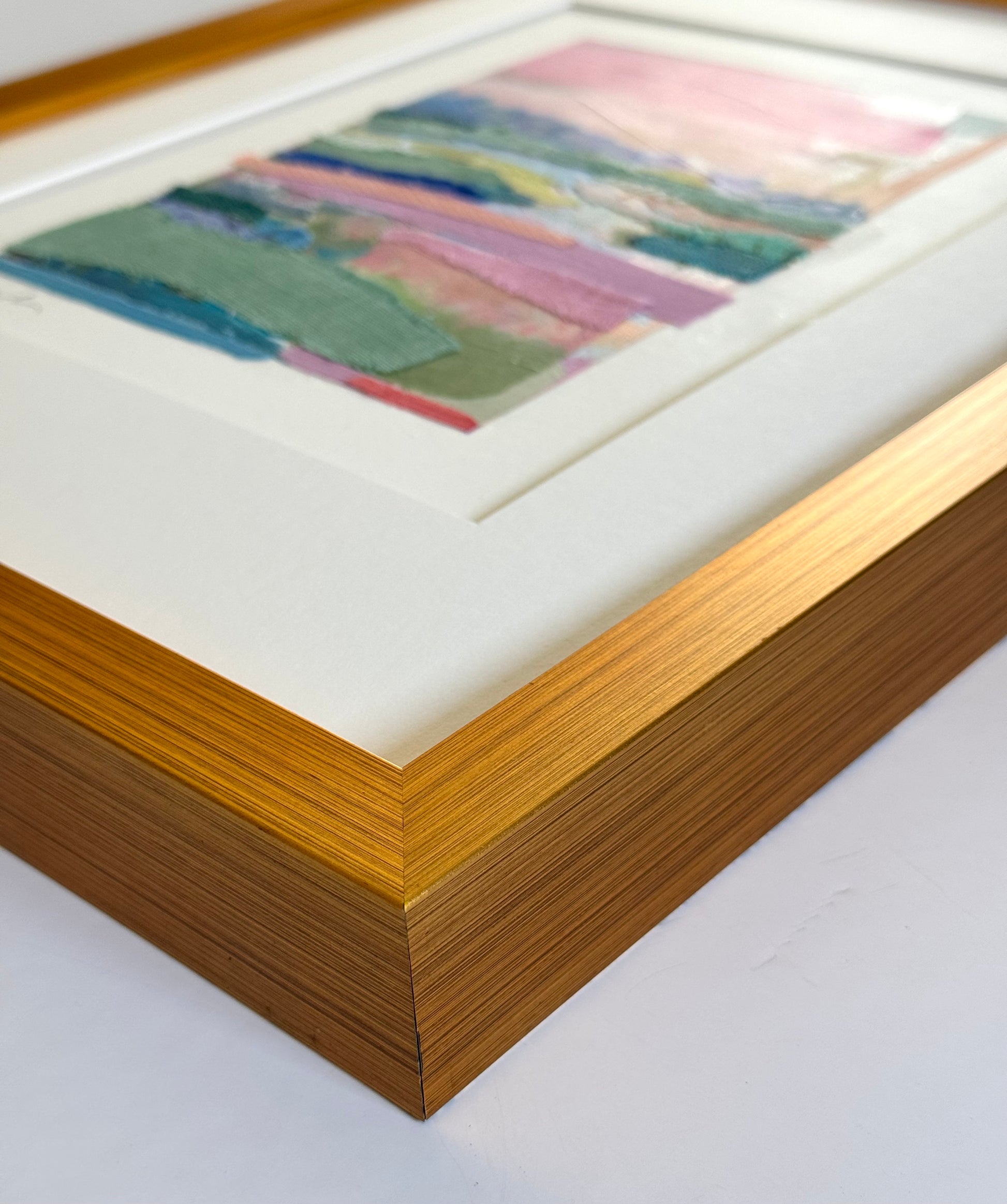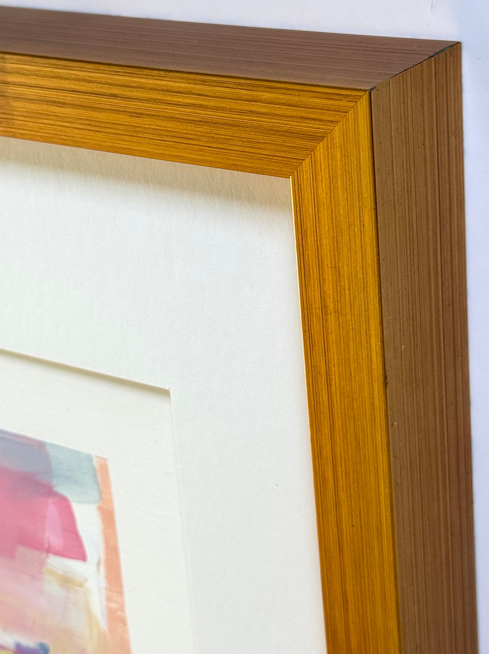Gold-leaf wood frame included, archival white mat, acrylic-plexi cover