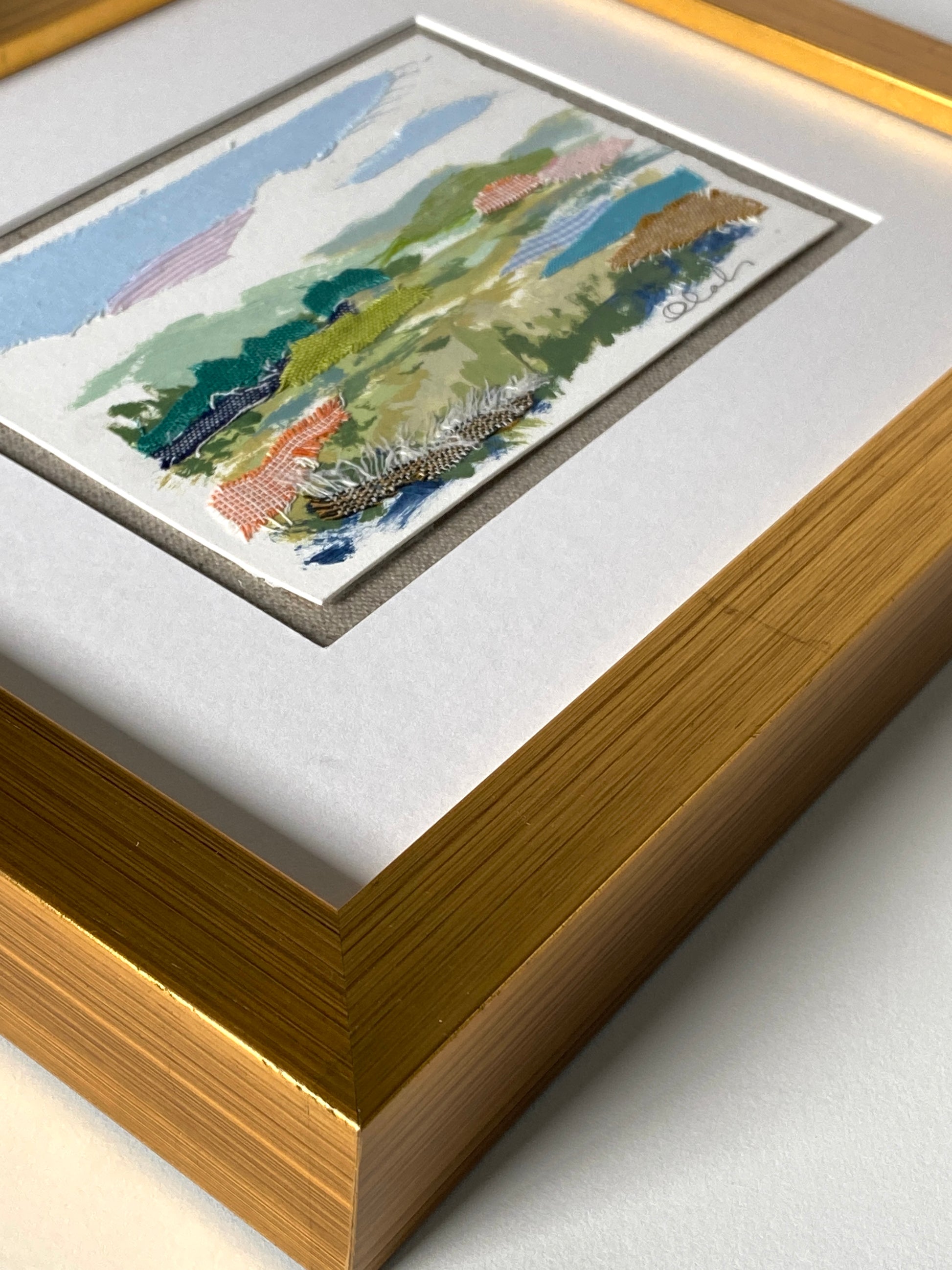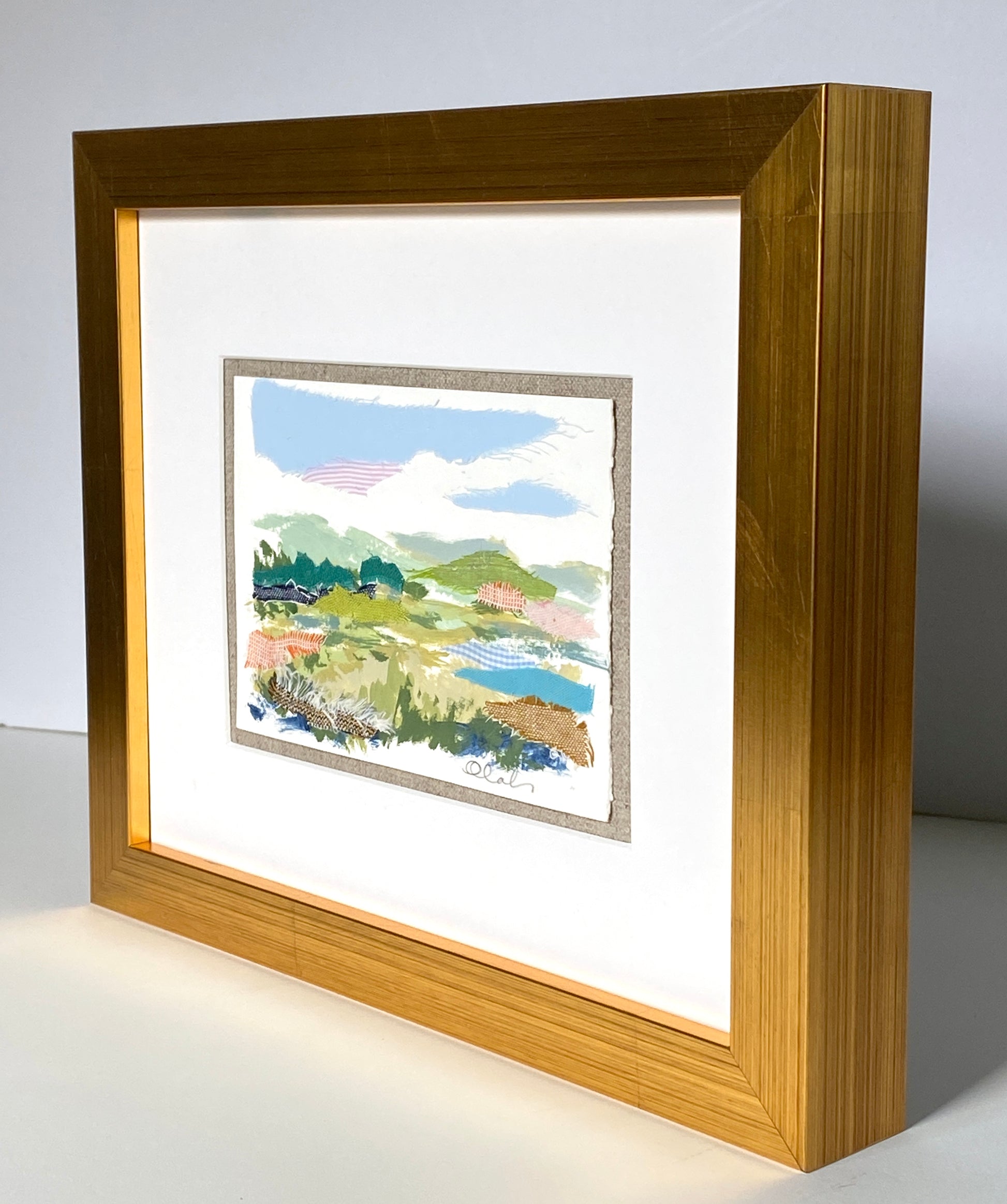 Gold-leaf wood frame included, archival white mat, mounted on natural linen, acrylic plexi cover